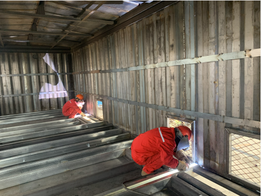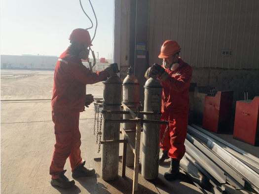 在确保安全的前提下,力保生产高效运行。李经理和牟总带领三名副厂长分工明确,连续几天加班加点,不折不扣落实好做好各项生产衔接任务。厂区内的焊接声、打磨声、航吊起运声,声声入耳,一套套平移装置,泥浆循环罐敲打焊接火花声伫立在厂房周围......巾帼不让须眉的女职工也争做榜样争先锋,认真做好所负责的工作环节,大家相互配合、凝心聚力,发扬在技术操作上精益求精,在精神上践行“苦干实干”“三老四严”,增强责任心,提高执行力,确保产品按期出库,全面提升服务意识,为渤海钻井队平稳生产保驾护航。