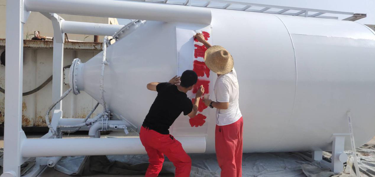 为达到主业井队的标准要求,他们先后对罐上的安全绳索进行更换、对过期的压力表和安全阀进行重新合格效验、对重要部位的颜色进行涂漆、对石粉罐标识的位置精确到毫米、对标识字迹做到清晰规整;并结合环保与安全的标准,再次对石粉罐泄压口进行重新设计和制作,以保障井队安全生产过程无缝隙衔接。在石粉罐投入使用后,得到了甲方领导们的高度认可和好评,紧接着又从公司租赁了多个罐配送给井队。