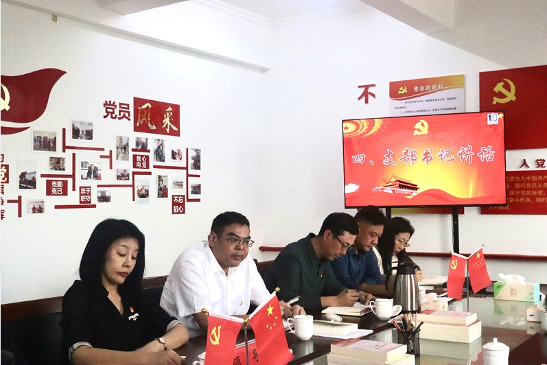公司在家领导、在岗党员参加会议,由支部委员张同亮同志主持,孙洪同志作部署讲话:
