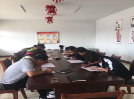 两周培训学习后,人力资源办公室下发了《应知应会100题》题库,大家自主学习复习,以考试的形式检验学习效果,对机关及各厂队在岗员工进行笔试考核,在公司党支部王山书记和人力资源葛晓丽主席的监考下,严肃考场纪律,加强监考力度,一视同仁,考试过程中严密有序,规范严谨。