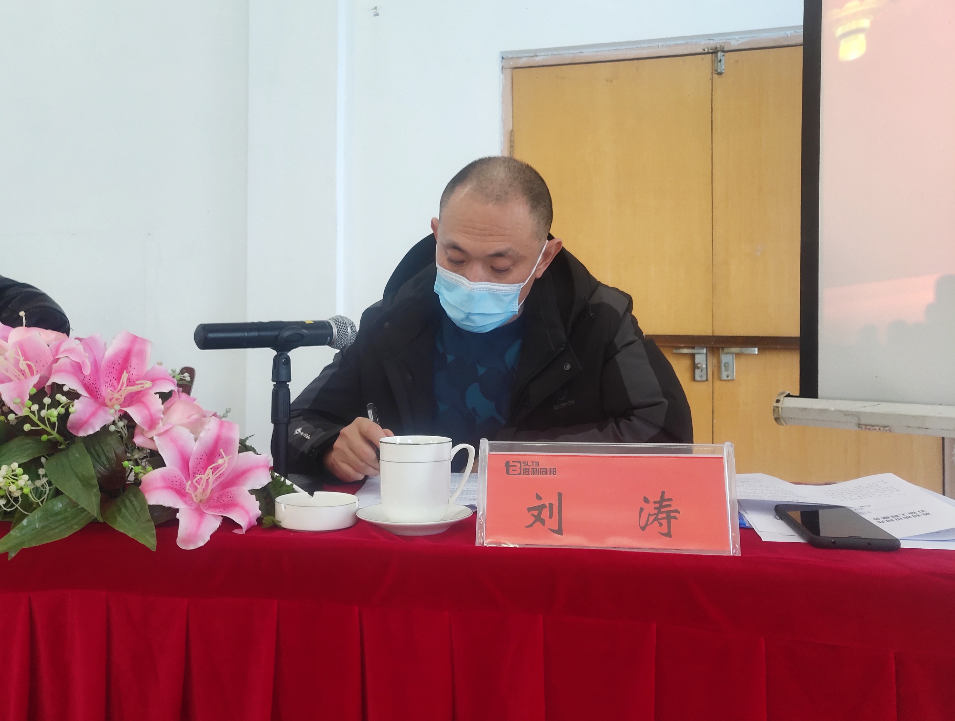 会议在庄严的国歌声中拉开帷幕,公司董事长兼总经理孙洪、党支部书记王山、副总经理李东升、张同亮、刘涛参加会议。