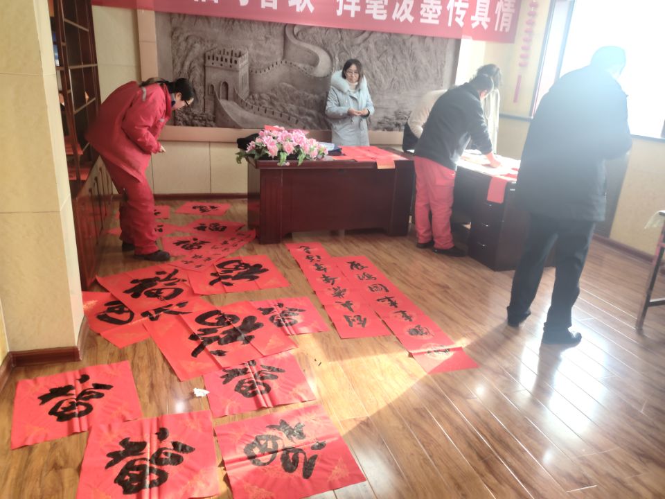 今天,公司为广大书法爱好者提供一个学习、交流和展示的平台。现场纸墨笔砚一应俱全,奉上一副副喜庆的春联,表达一家一户对新年的美好愿望,在自己的家门口贴上春联和福的时候,意味着过春节正式拉开序幕。大家都挑漂亮的红春联贴于门上,辞旧迎新,迎接虎虎生威的2022增添亮丽喜气的色彩。
