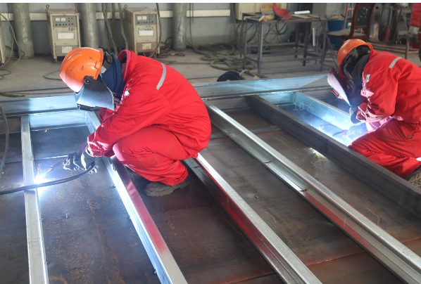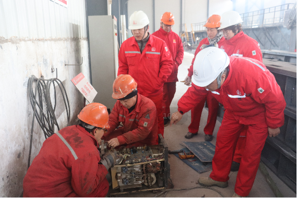 各厂队工作热火朝天,虎气十足的气氛。将火星四射的焊接火花转为对工作的热情。