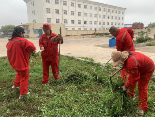 7月13日,在公司副总经理李东升和监事会主席兼物资办主任王伟的共同组织下,机关全体干部职工对基层厂队绿化区域进行除草清理,此次义务劳动,为了减少花果树木的不必要损失,首由综合办马冲主任对杂草进行了大面积的清除,机关人员再次集中对杂草和枯树进行全面细致的清理,大家热情高涨、铆足干劲的投入到劳动中,不分你我,劲往一起使、汗往一处流,纷纷撸起袖子挥镰铲草,各个环节衔接有序、配合默契。经过两小时的奋战,清除枯枝死树、花坛杂草任务圆满完成,用实际行动共同创造公司良好卫生环境。