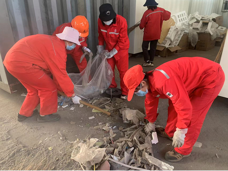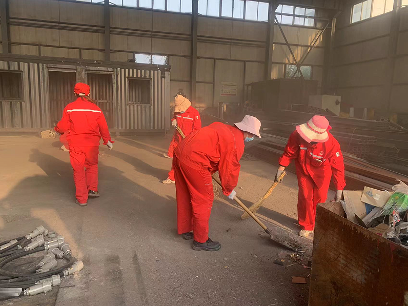 秋高气爽,大家带着劳动热情为厂区进行环境卫生清理,在分管领导副总经理李东升和副总经理常勇的安排部署下,强化安全自身安全意识,精心组织,分工协作,各部门负责人担当在前,有的拿着扫帚、有的铁锹等劳动工具,打扫厂房、清理车间内杂物、车辆划线……大家积极行动,顶着尘土飞扬,清扫每块区域卫生,大家配合有序,干劲十足,经过近两个小时的努力,厂区院内的杂草、垃圾及厂房内卫生基本清理干净,美化了环境卫生和办公区域,充分发挥了团队合作精神,不怕脏、不怕累的优良作风。