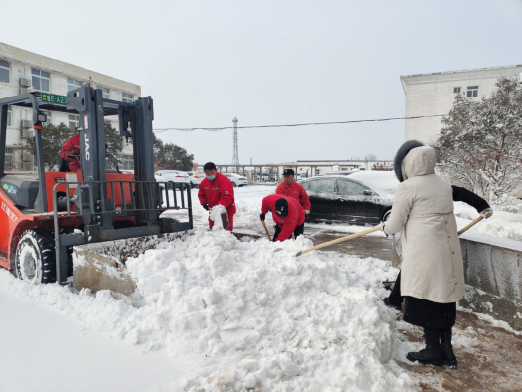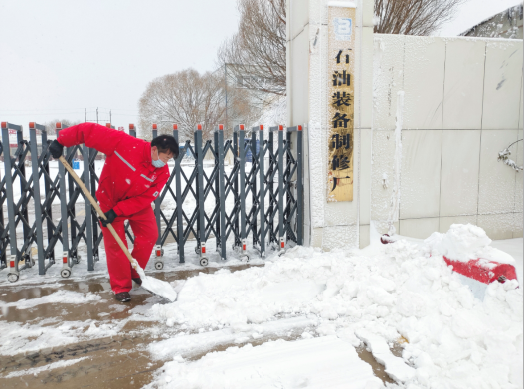 12月15日,强降雪过后,公司门口道路被厚厚的积雪所覆盖,车辆行驶缓慢,行人步履蹒跚,地面的积雪已经没过脚面,给过往行人、车辆带来了极大的不便和安全隐患。为了保障职工上、下班安全,防止因雪天地滑造成的意外伤害,在大雪纷飞的天气里,公司组织全体机关人员在第一时间开展了义务扫雪活动,由张同亮副书记带头,机关各部门以及基层单位积极响应,都参与到扫雪行列之中。
