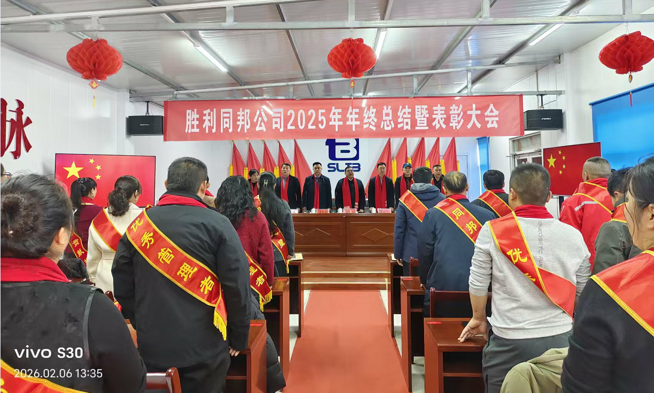2026年2月6日,胜利油田同邦公司2025年度年终总结暨表彰大会胜利召开。会议在庄严的国歌声中隆重拉开帷幕,公司党政班子成员、先进个人和各科室负责人等参加,共同回望2025年奋斗征程,表彰最佳效益厂队、优秀基层单位和各岗位、各层级先进个人,凝心聚力,共绘公司发展蓝图。