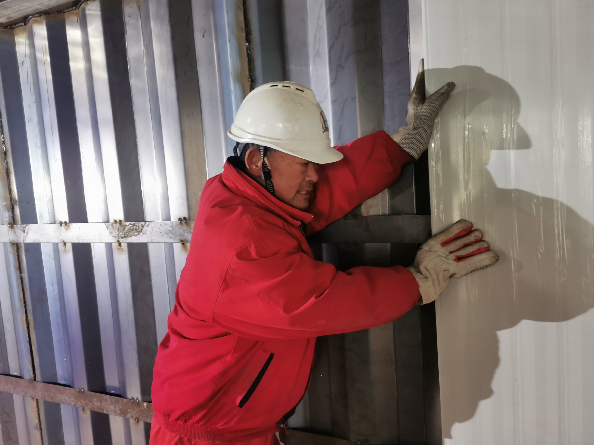 黝黑的脸庞布满皱纹,宽厚的手掌满是老茧,年龄永远不会是进步的阻碍,工作中他的眼神坚定,威严扑面而来,他就是石油装备制修厂厂长牟吉祥。