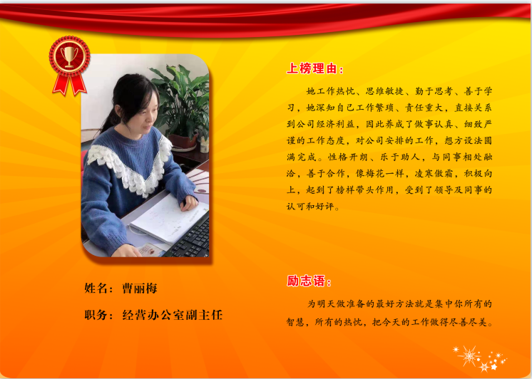 同邦公司银牌员工--外部市场办公室主任刘小燕